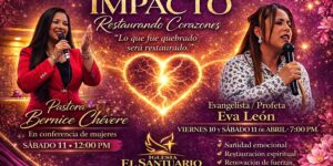 Este evento es para todos. No solo para la mujer. El evento esta diseñado para ministrar a los corazones de todos que asistan el evento. La profeta Eva es grandemente usada en los dones del Espíritu Santo. Su días de ministraron sera Viernes Abril 10 a las 7:30pm y Sábado a las 7:30pm. También la Pastora Bernice Chevere estará dando una conferencia dirigido a la mujer el Sábado a las 12:00pm.